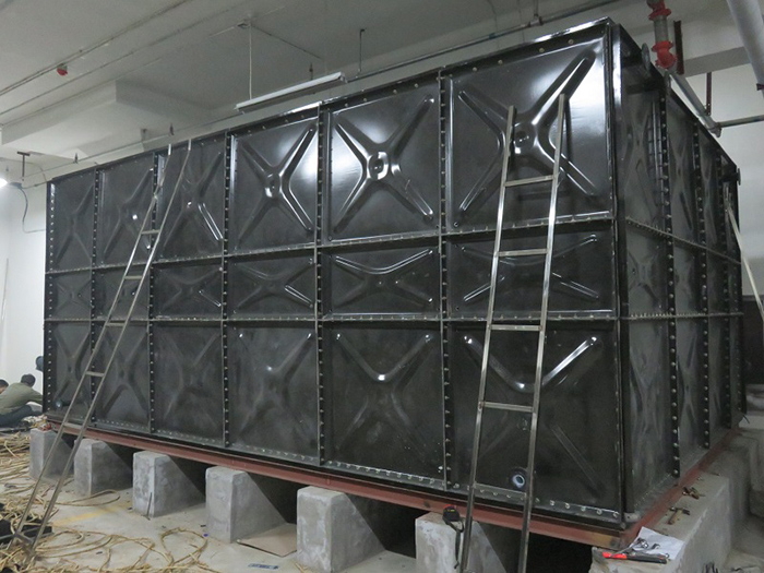 裝配式搪瓷鋼板水箱材料經高溫燒結搪瓷,使水箱板面形成致密釉層,與鋼板界面離子之間互相結合,混合形成厚度約200—300微米的擴散層,增加了搪瓷面的附著力。